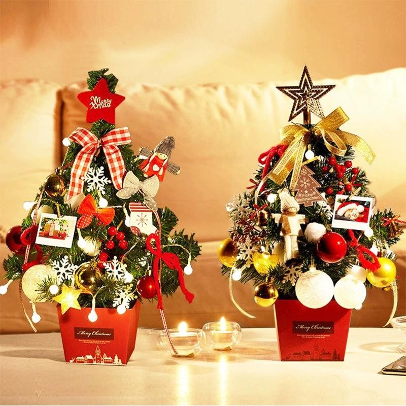 LED Christmas Tree / Pohon Natal Mini Dengan Lampu / Dengan Aksesoris Hiasan / Red Ribbon Hiasan Natal