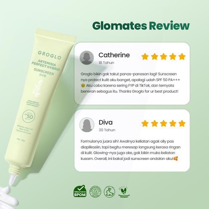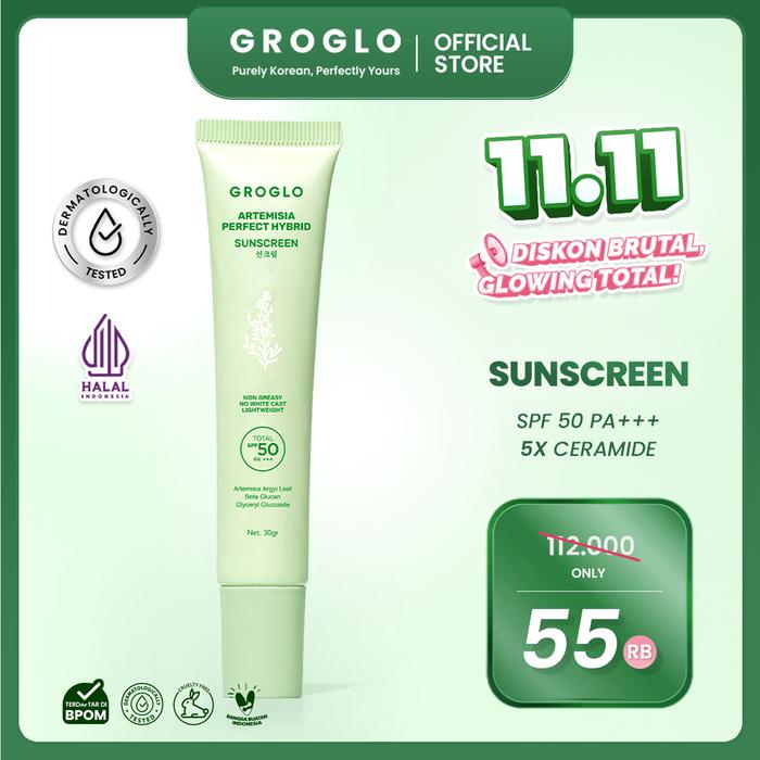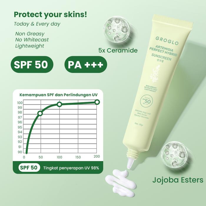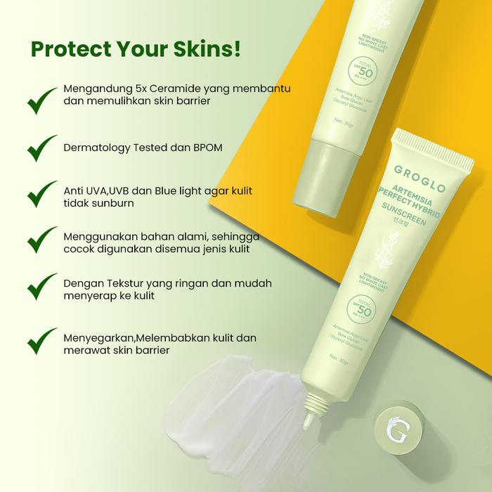 GROGLO-ARTEMISIA PERFECT HYBRID SUNSCREEN SPF 50PA+++ NO WHITE CAST 30GR ALL SKIN SOLUTION PERAWATAN MUKA BERMINYAK BERJERAWAT WITH CERAMIDE