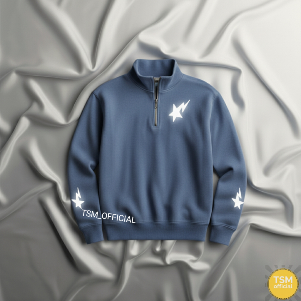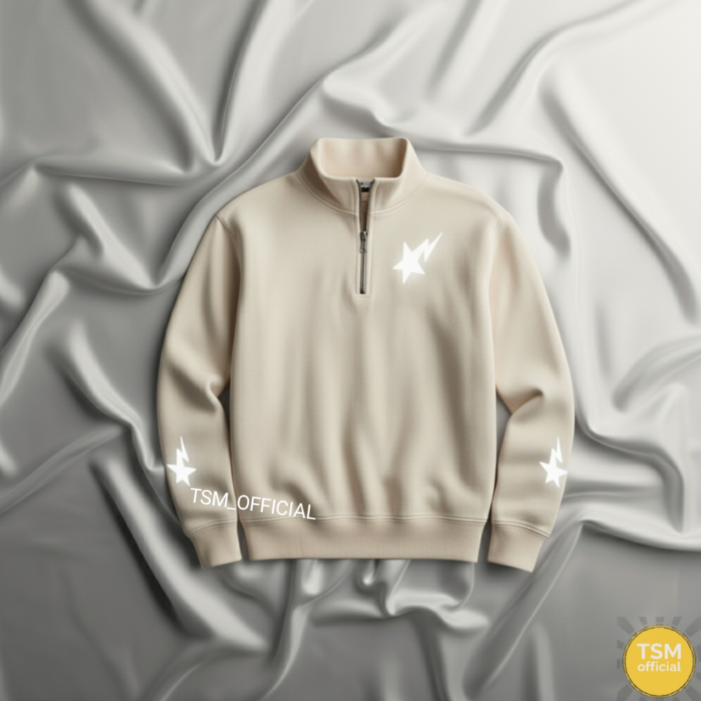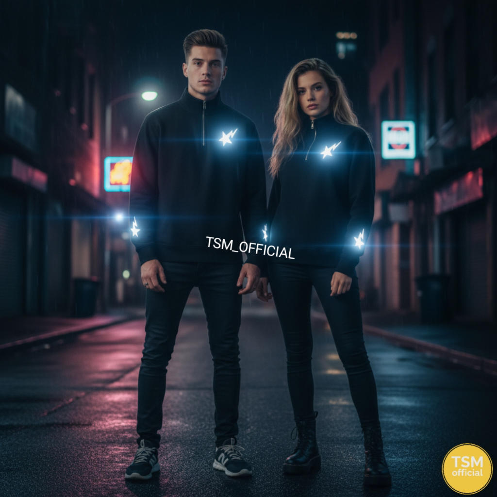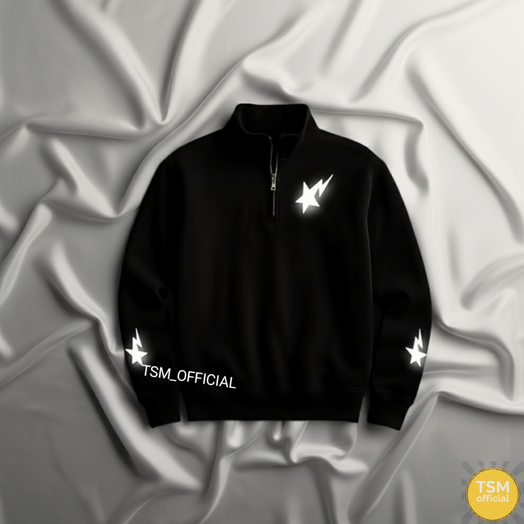 Tsm Sweater Bintang Petir Nyala Halfzipper Pria Wanita Reflektif Hitam Polos Sweater Nyala Logo Bintang Reflektif Kerah