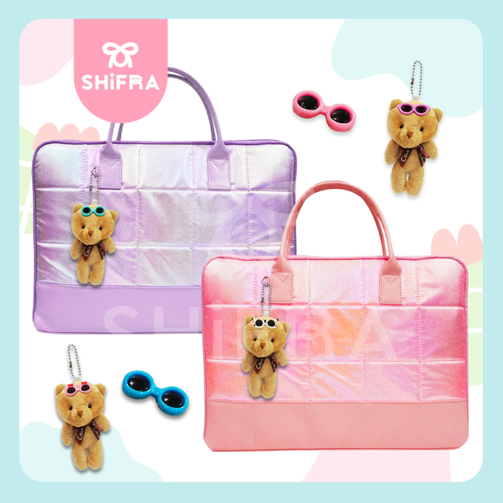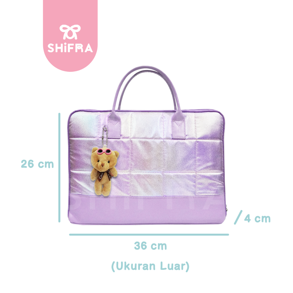 Shifra Tas Laptop Jinjing 14 inch Waterproof Puffy Pillow Kotak Hologr Metalic
