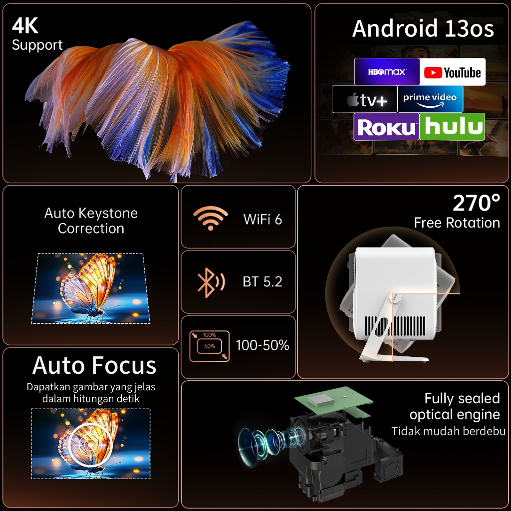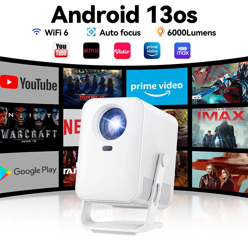 QIAOLET Proyektor Android 13os Projector C600 Auto Focus Projector Smart 150 ANSI Lumens Android Proyektor Mini