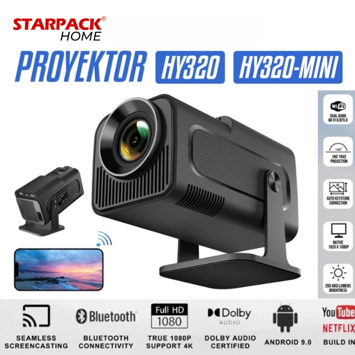 HY320-MINI Smart Proyektor Android 11 Full HD 1080P – WiFi 6, HDMI IN, Support 4K