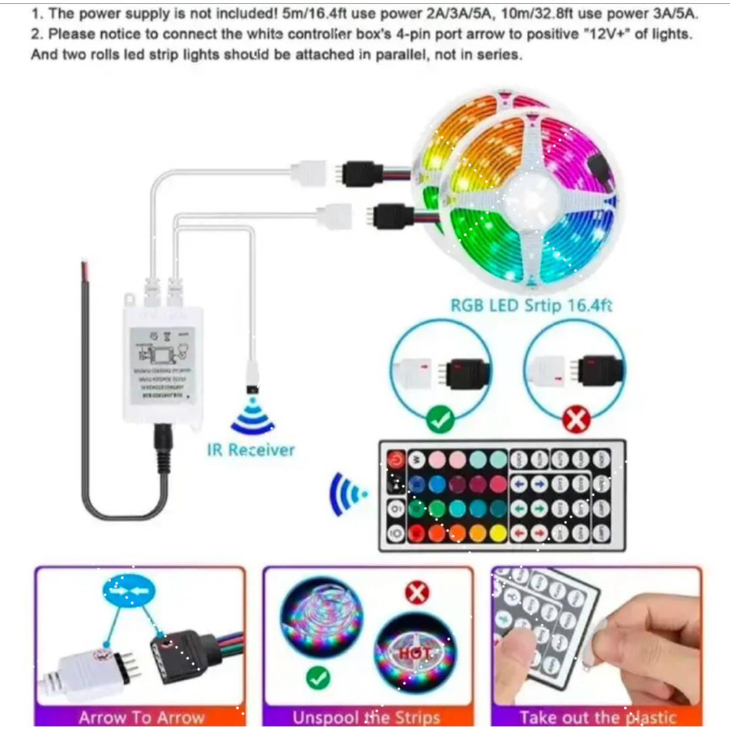 LAMPU LED STRIP 3528 2835 RGB WATERPROOF WARNA WARNI IP44 5M AC 220V + ADAPTOR + REMOTE 3528