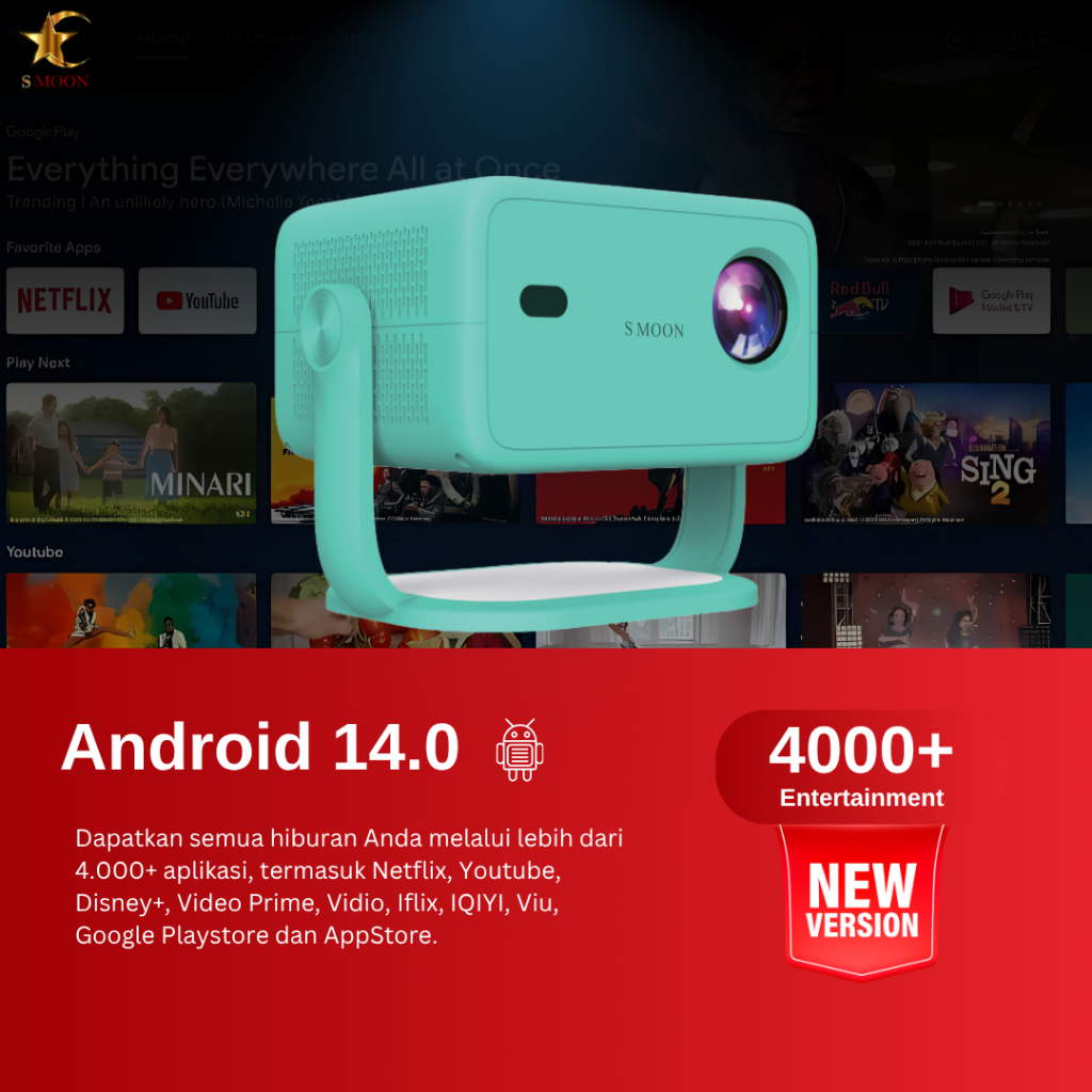 SMOON520 SMART PROYEKTOR LCD TV - SMOON KIDS APP - GOOGLE STORE - ANDROID - NETFLIX - YOUTUBE - INCLUDE HDMI - WIFI