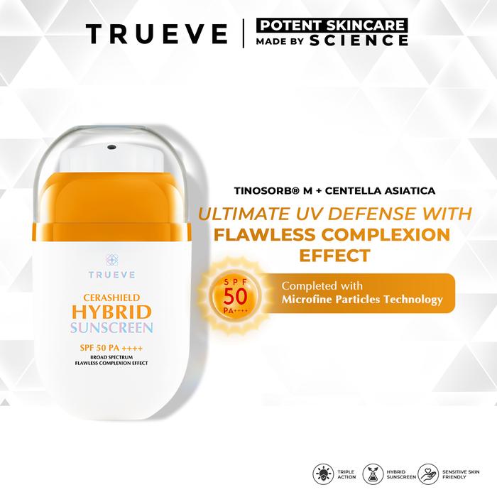 TRUEVE CERASHIELD HYBRID SUNSCREEN - SPF 50 PA++++ TONE UP HYBRID SUNSCREEN BUMIL BUSUI FRIENDLY (CERABOOST, TINOSORB, CENTELLA ASIATICA) - HYBRID SUNSCREEN