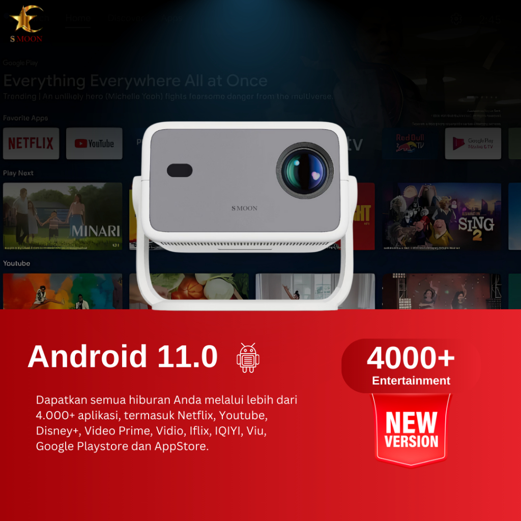 SMOON480 SMART PROYEKTOR LCD TV - HDMI - GOOGLE STORE - ANDROID - NETFLIX - YOUTUBE - WIFI - 480ANSI - 1.080P-4K