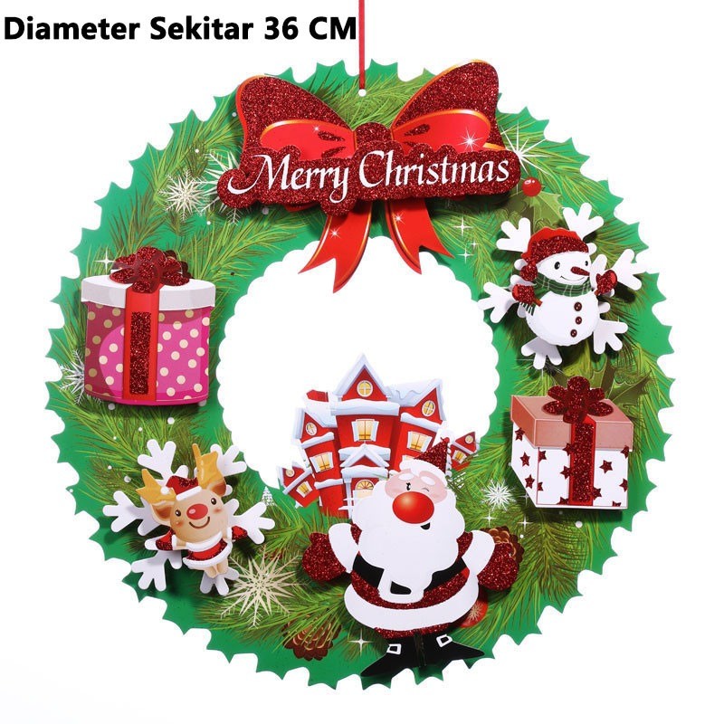 Christmas 3D Kras Natal Lingkar Hiasan Pintu Chrstmas Hiasan Hiasan Natal Klasik Cocok Untuk Dekorasi Pintu & Dinding Di Festival Natal