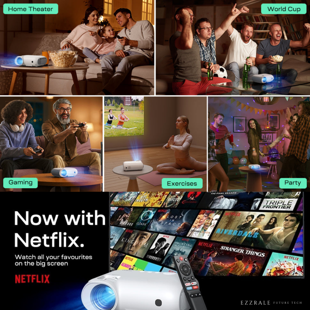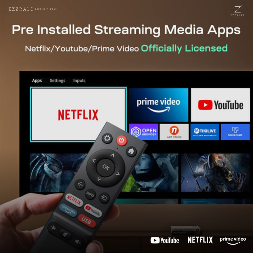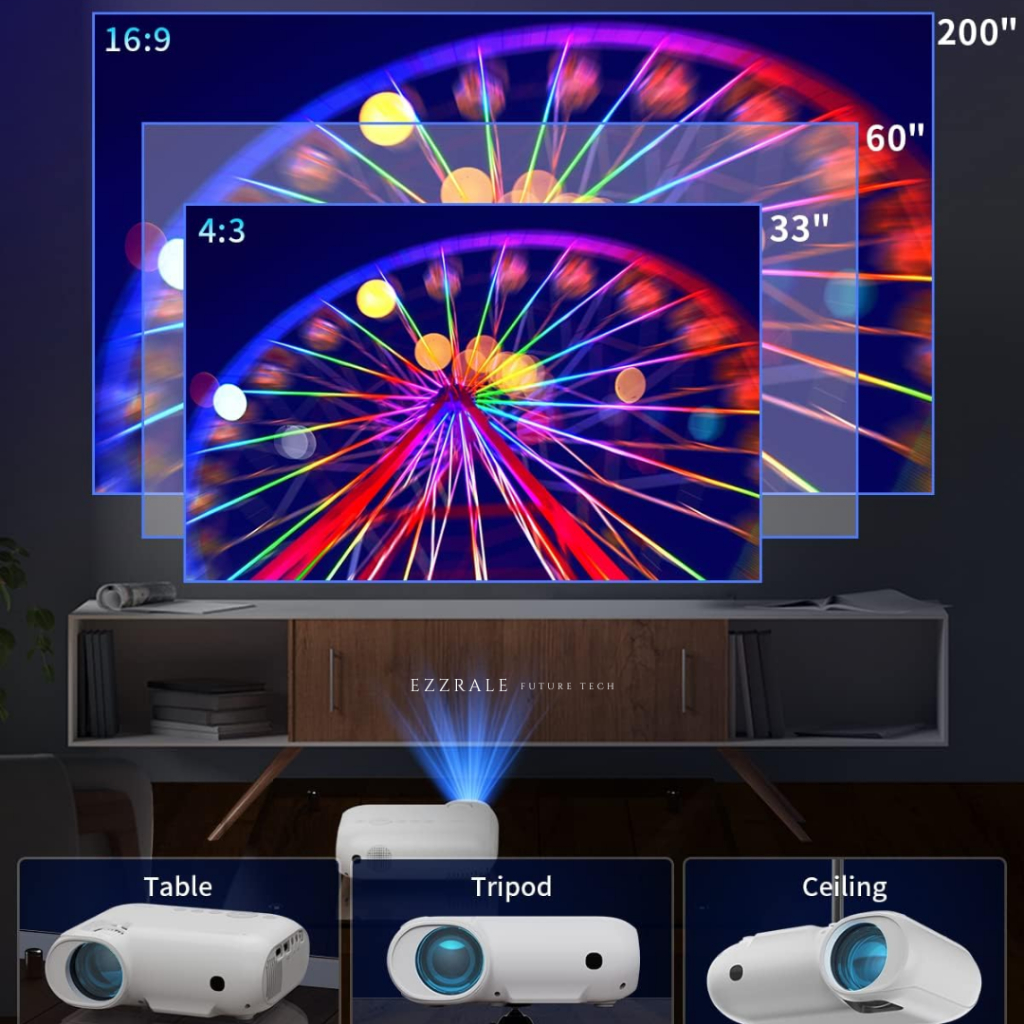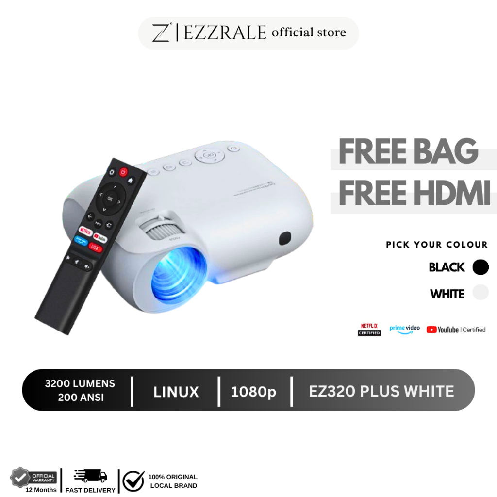 EZZRALE EZ320+ (Plus) 3200 Lumens ( 200 ANSI ) Smart Projector LINUX Netflix & Dolby certified