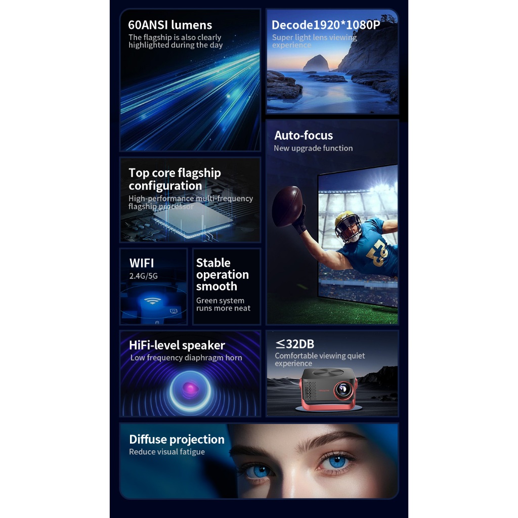 Xiaomi-M60/Smart Proyektor 4K 1080P Hdmi 100 Inci Portabel Mini Untuk Dinding Kamar Tidur Pencerminan Layar Nirkabel Dar