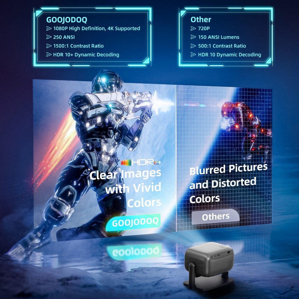 Goojodoq 4K Ultra HD 1080P Proyektor for Phone Speaker Bluetooth Laptop Screen Android Netflix WiFi
