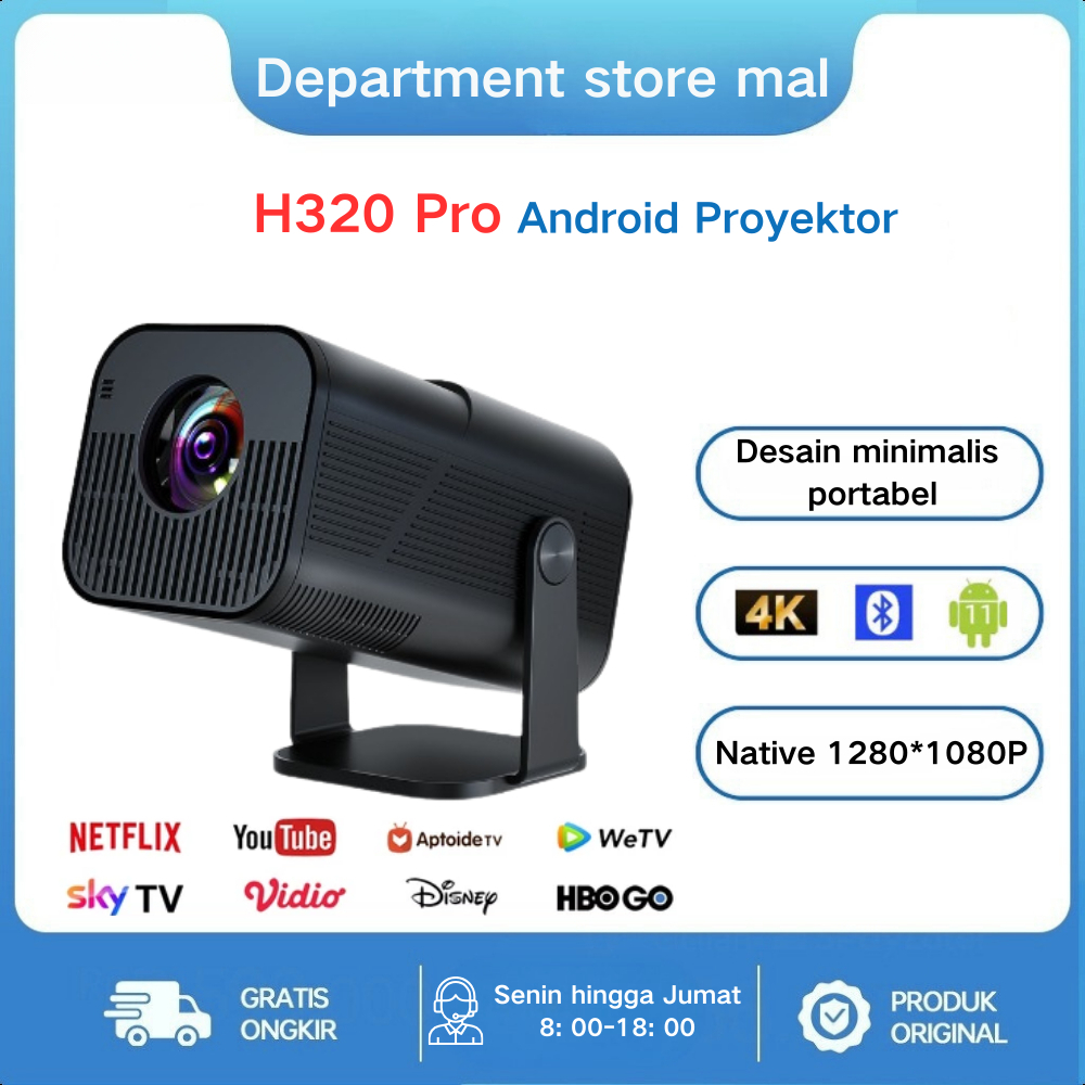 Proyektor Mini Hy320 Pro/ Hy320Mini/ Android 11.0 Bluetooth 5.0 200 Ansi Lumens Portabel Sederhana 4K