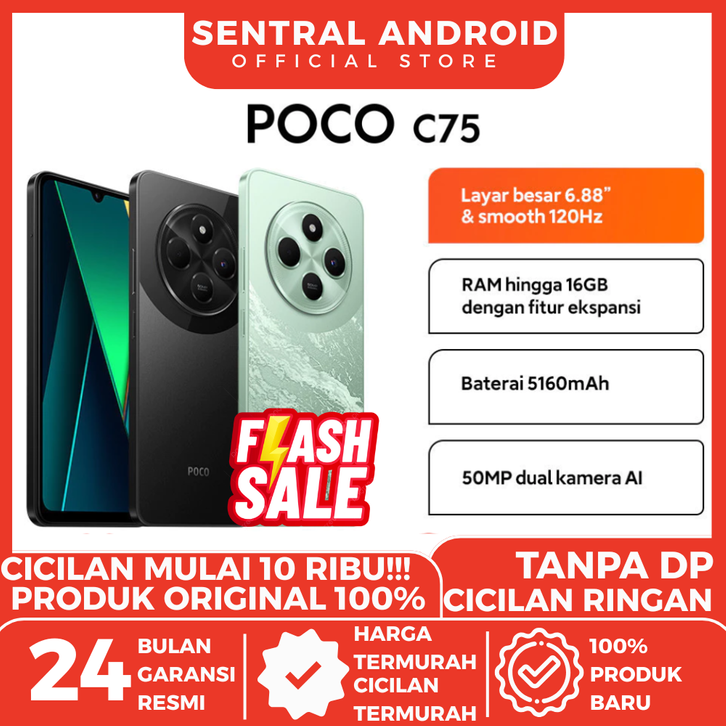 POCO C75 (6/128GB) (8/256GB) Layar 6.88" | 50MP AI | Refresh Rate 120Hz | Garansi Resmi Xiaomi | Sentral Android