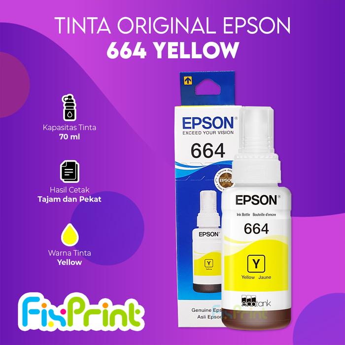 Tinta Epson 664 T664 T6641 Original Black Hitam Color Warna Ori L360 - Original, Hitam