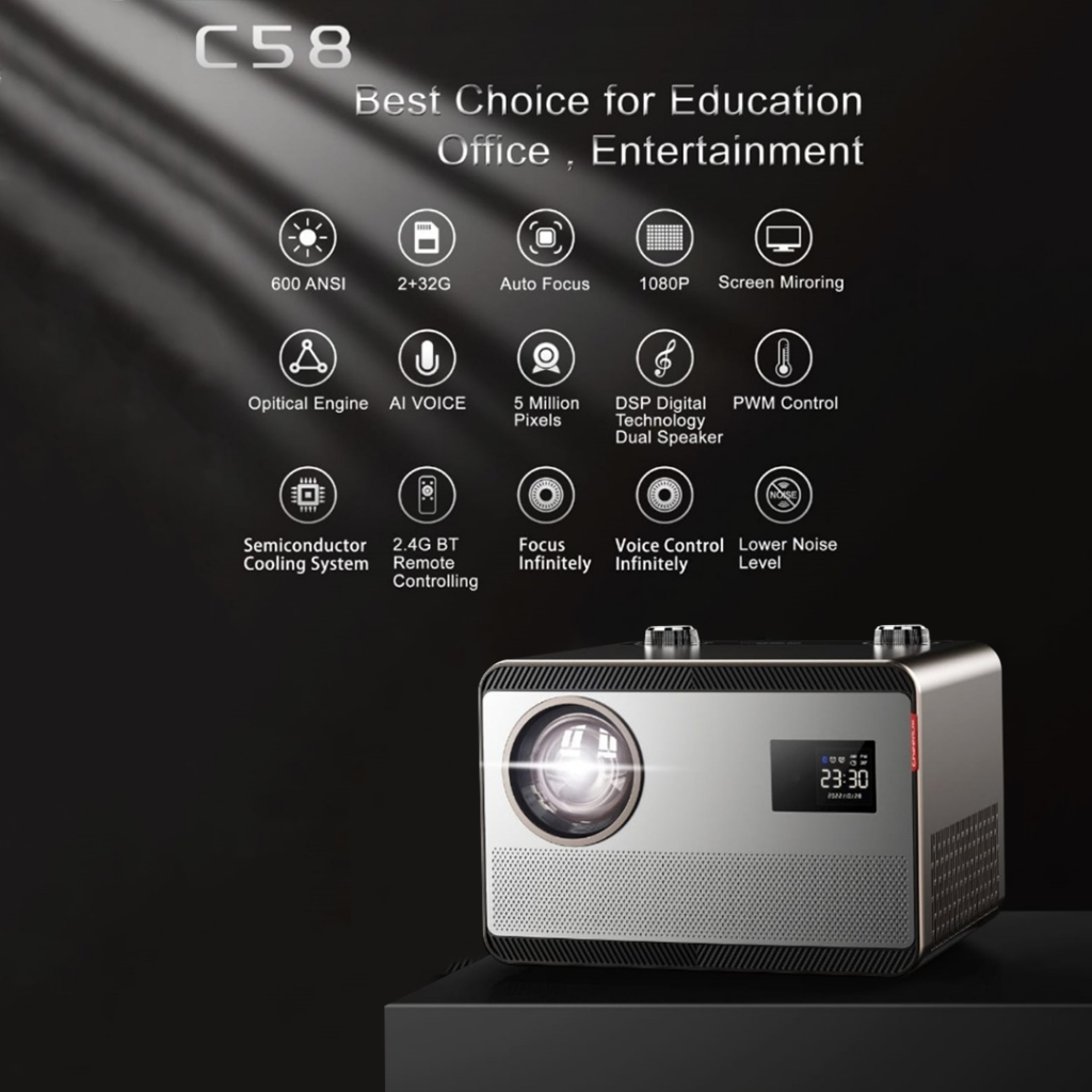 CHEERLUX INDONESIA | Proyektor Cheerlux C58 Android Wifi Mirroring Bluetooth 6000 Lumens 1080P Native 4K Supported
