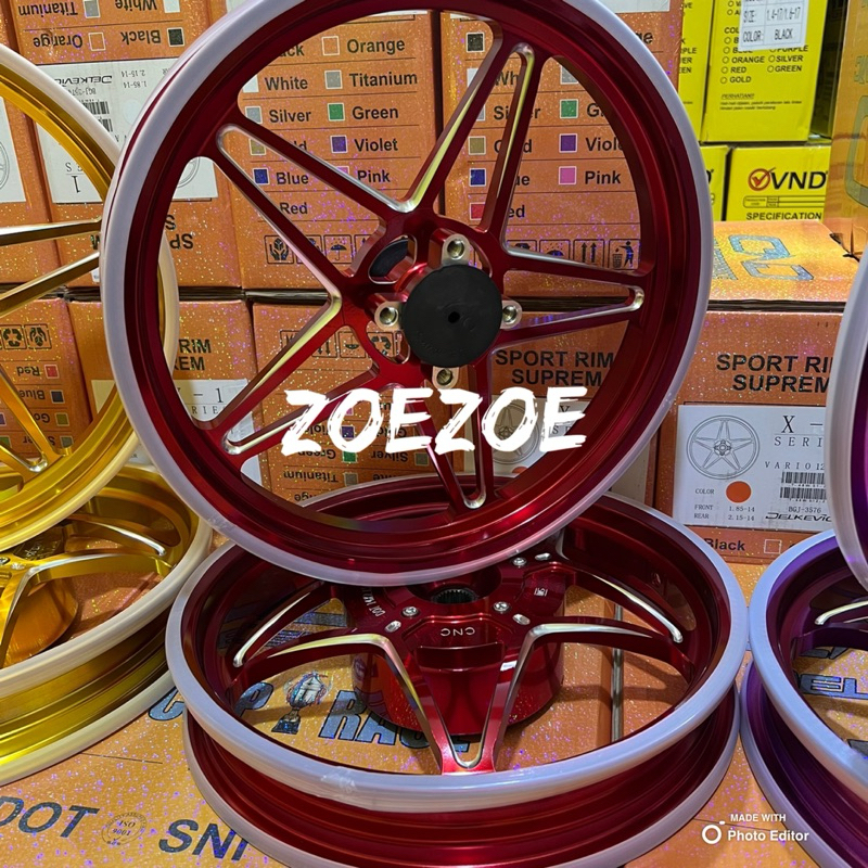 DELKEVIC VELG RACING X1 SERIES MIO SPORTY/ MIO M3 / BEAT/SCOOPY/GENIO/VARIO 110/VARIO 125/ 150 UK DEPAN 1.85X14 / BELAKANG 2.15X14