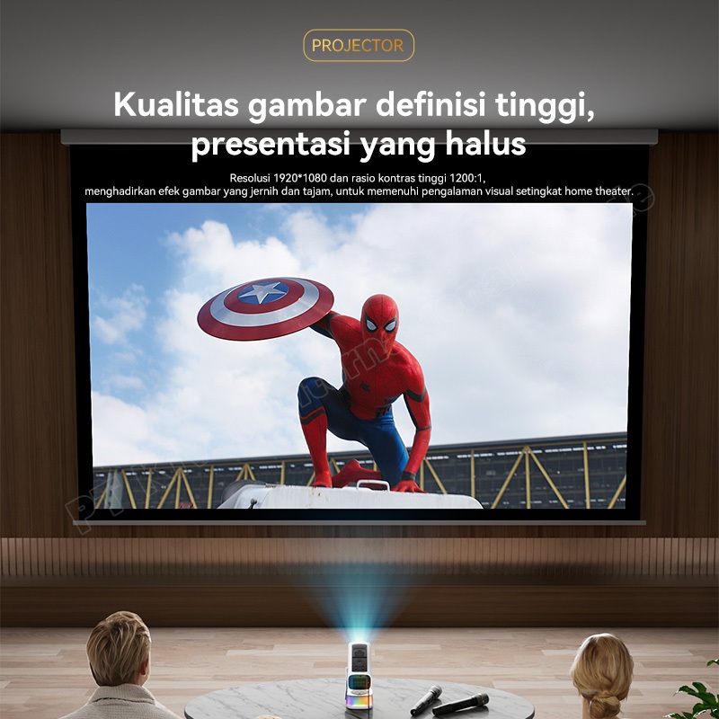 SAERIS Proyektor Android 4K Full HD Proyektor hp ke Dinding Max 200" AI Auto Infokus WiFi 5G RGB