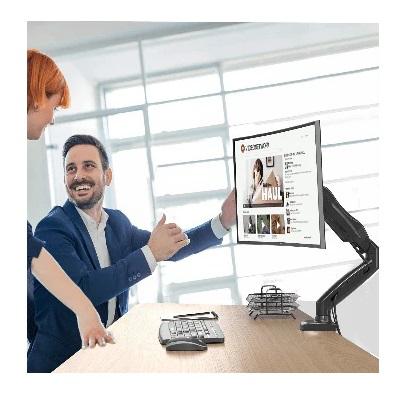 BRACKET JEPIT MEJA MONITOR PC 19 21 24 27 29 32 34 INCH DESK MOUNT HIDROLIK MIRIP NB F80 SINGLE ARM GAS SPRING TEKUK - HITAM