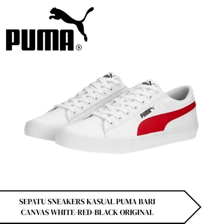 SEPATU SNEAKERS KASUAL PUMA BARI CANVAS WHITE-RED-BLACK ORIGINAL