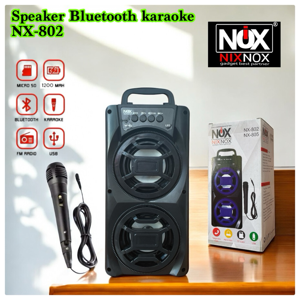BIG BASS Speaker bluetooth nixnox NX-802 FREE MIC speaker karaokr termurah big bass
