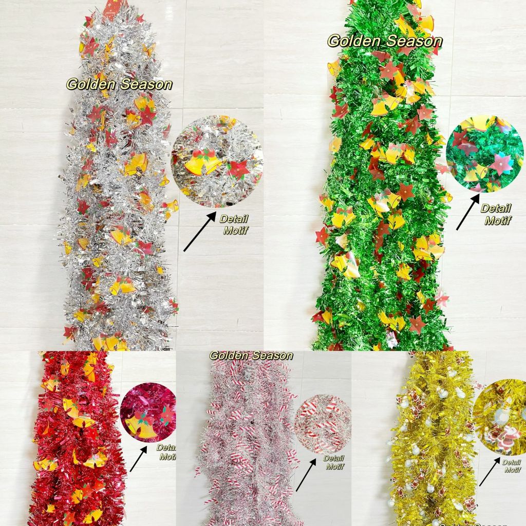GROSIR Slinger Natal 2 Meter Premium Tebal Garland Tinsel Hijau Salju Dekorasi Christmas