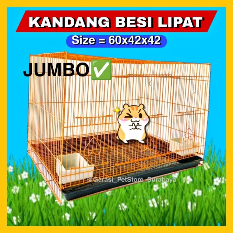 GPSS- Kandang Besi Lipat JUMBO 60x42x42 Kandang Kucing Anjing Sangkar Burung Kenari Love Bird Cat