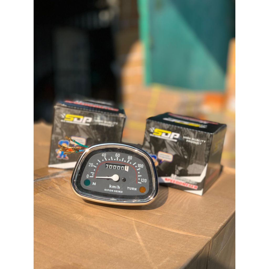 Spidometer CD90 Model Analog Merk SDP Spidofungsi Latar Hitam Lis Chrome