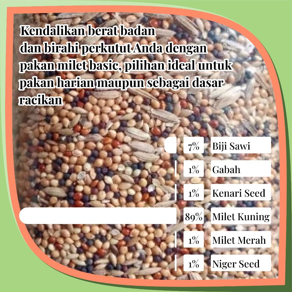 Pakan Burung Perkutut 1Kg Supaya Gacor Kiloan Biji Sawi Gabah Kenari Niger Seed Milet Kuning Merah