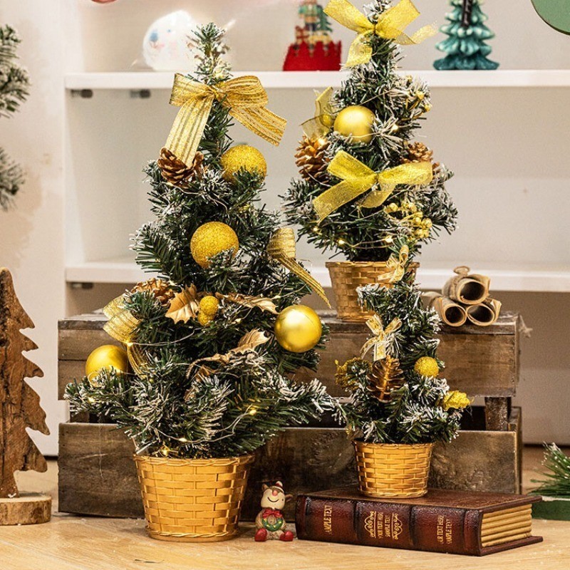 50CM Pohon Natal Mini Christmas Tree Natal Meja with Ribbon Bow Ornament Artificial Christmas Tree Unik Model Kecil Hiasan Dekorasi