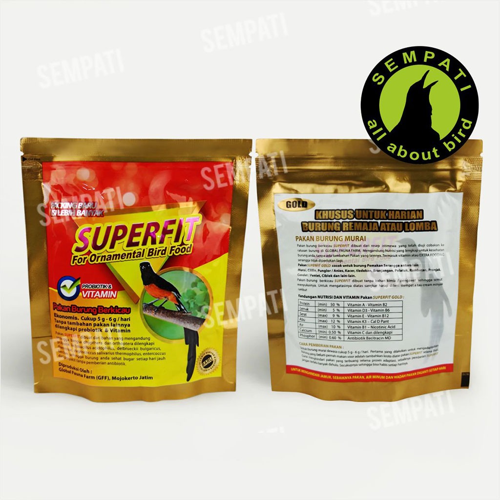 SEMPATI Superfit Super Fit Gold 100gr Original Voer Pur Pakan Burung Murai Kacer Kenari Anis Cililin Kacer Ciblek Cendet Pakan Gacor Penggacor Harian Lomba Burung Kicau Tinggi Protein