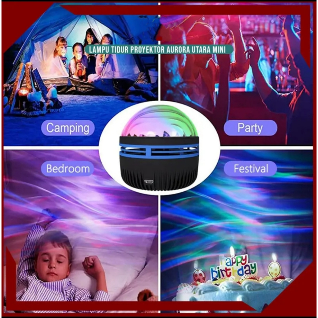 Lampu proyektor Aurora Utara mini Lampu Galaksi Langit Aurora Lampu Tidur Lampu Disco + Remote
