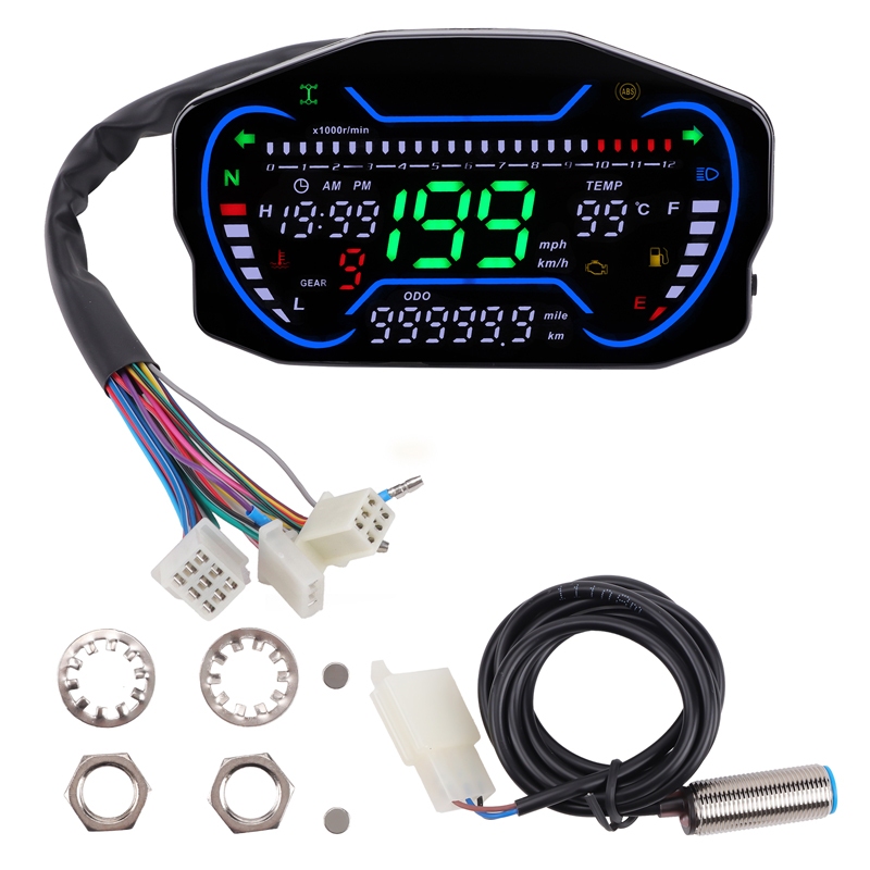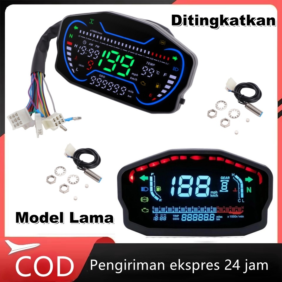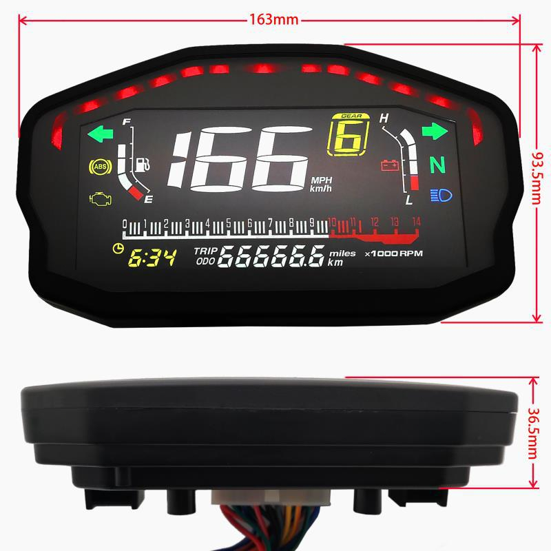 Speedometer LED LCD Universal untuk Motor 1, 2, dan 4 Silinder, Odometer Digital dengan Lampu Latar Odometer