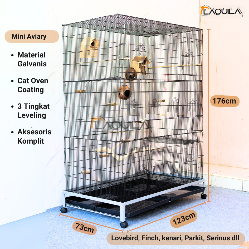 Kandang Galvanis Sangkar Burung Koloni Mini Aviary 3 Tingkat ready Full Aksesoris love bird parkit murai jalak cucak pipit finch Kenari Sangkar Umbar