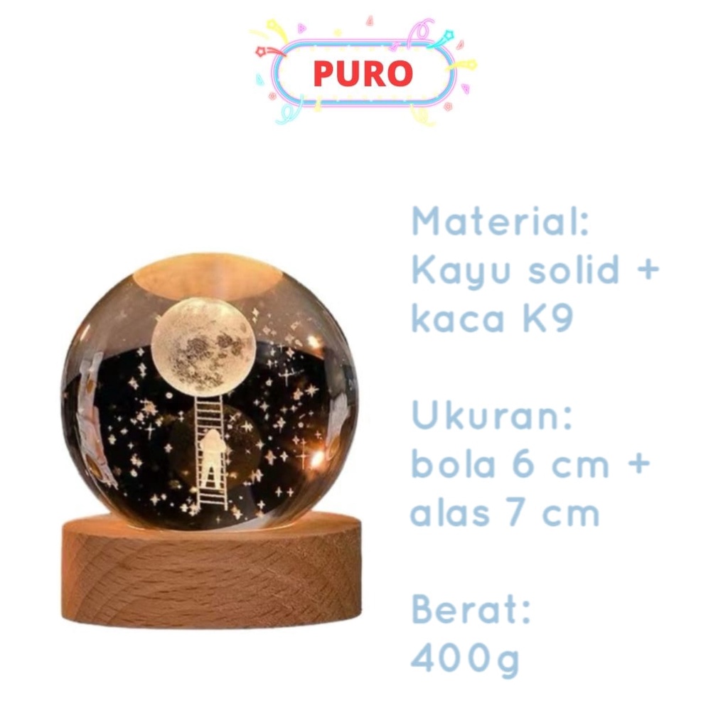 Lampu Kamar Tidur Led Hias Lampu Hias Malam Bulan Bola Kristal Lampu Bulat Aesthetic