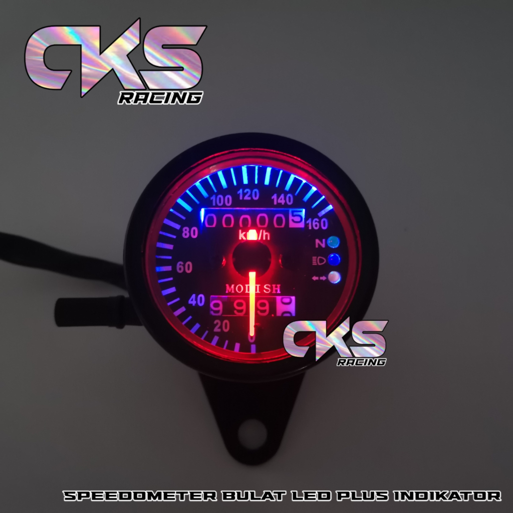 Speedometer bulat kilometer LED plus indikator sein motor universal