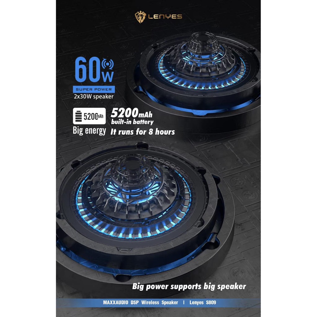 Lenyes S809 60W Maxxaudio Dsp Wireless Bluetooth Hifi Stereo Portable Speaker Powerfull Bass