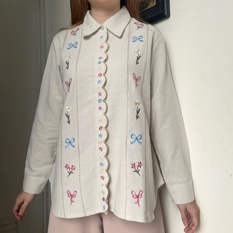 [Mall] BAJU WANITA KIRANA TOP ATASAN WANITA BLOUSE KEMEJA KERJA LINEN BORDIR KOREAN STYLE TERBARU KEKINIAN