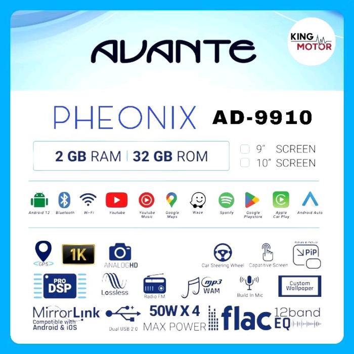 Head Unit Android Avante AD-9910 Phoenix 9 inch / 10 inch RAM 2 ROM 32 - 9"