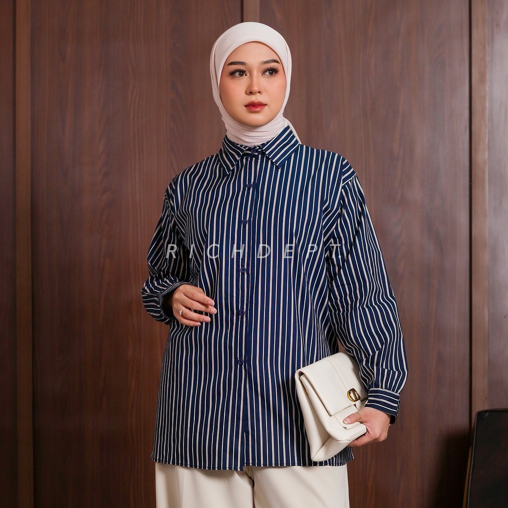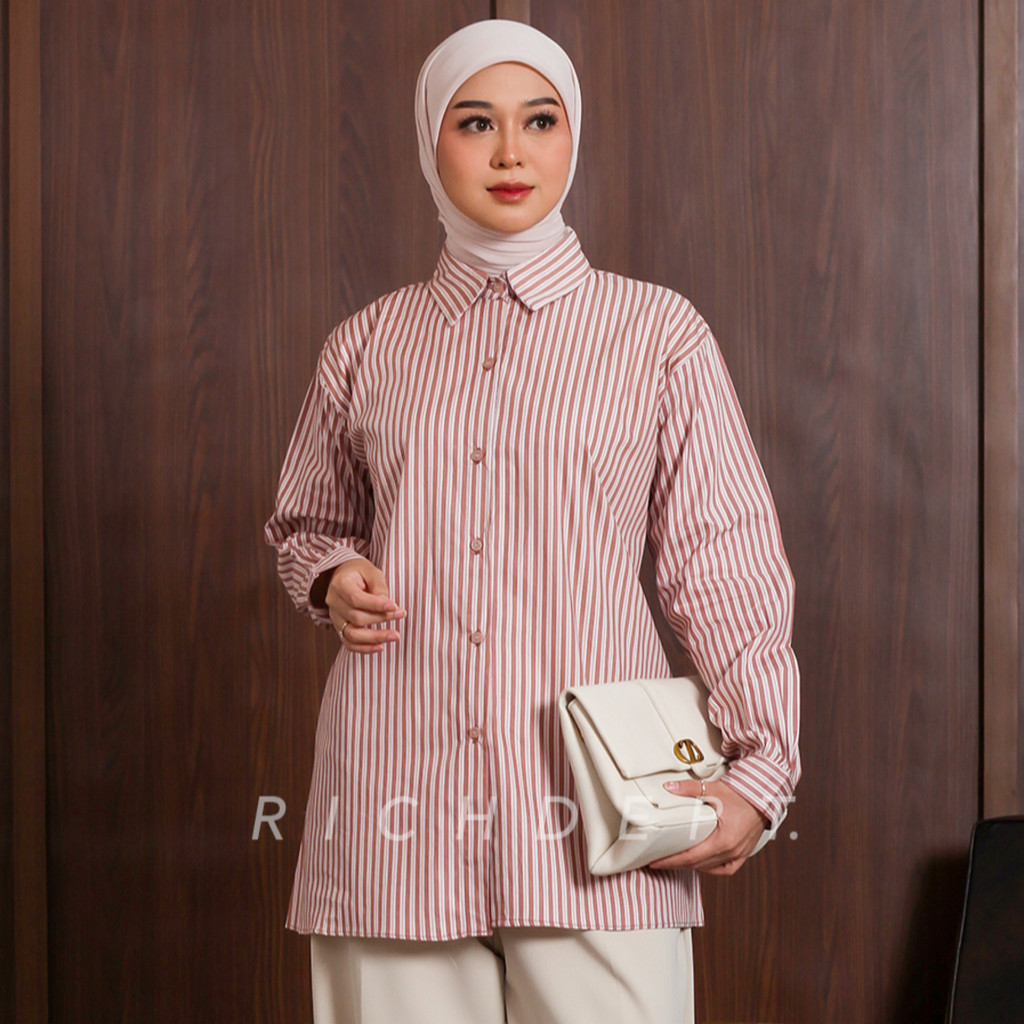 [Mall] BAJU WANITA KEMEJA WANITA OVERSIZE SALUR STRIPE BAJU ATASAN CASUAL OUTFIT KEKINIAN 2025 KOREAN STYLE
