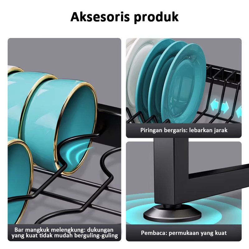 Rak Piring Wastafel Dapur Stainless Steel Multi-fungsi Dengan Penutup