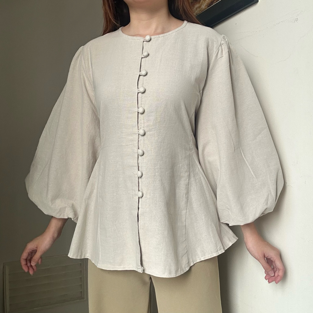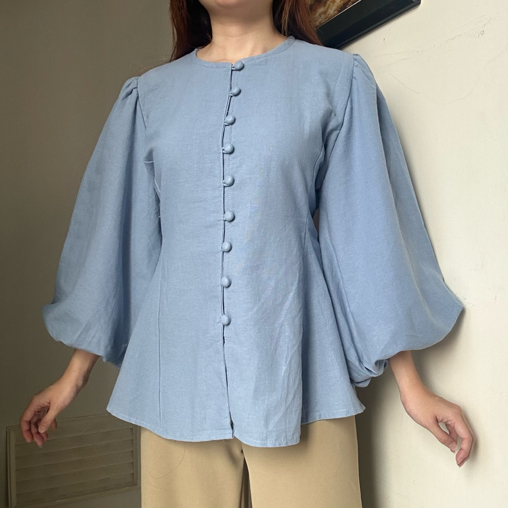 [Mall] BAJU WANITA ASTRID TOP ATASAN KEMEJA BLOUSE WANITA KERJA LINEN TANGAN BALON PANJANG KEKINIAN 2025 KOREAN STYLE