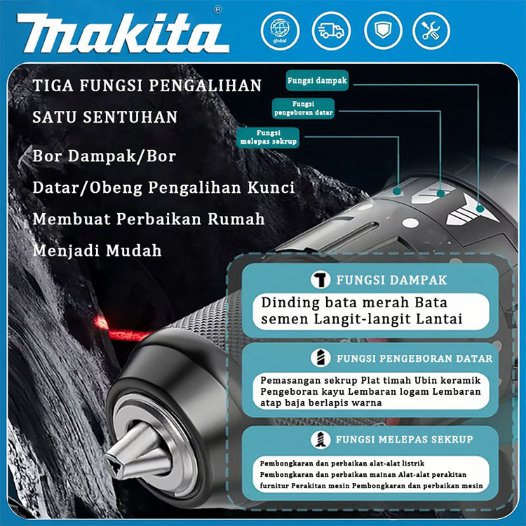 Makita 1850R/menit bor cordless cordless drill bor impact baterai impact drill mesin bor listrik