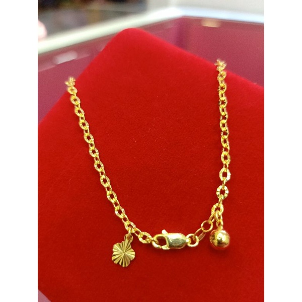 Gelangg Kaki NORI Ukir Dewasa Perak 925 Lapis Mas