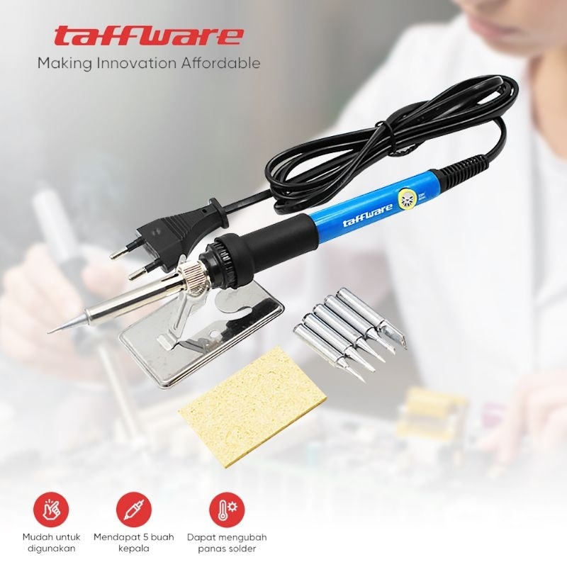 [BEST QUALITY] SOLDER [BIRU] SET IRON ADJUSTABLE TEMPERATURE 60W WITH BONUS