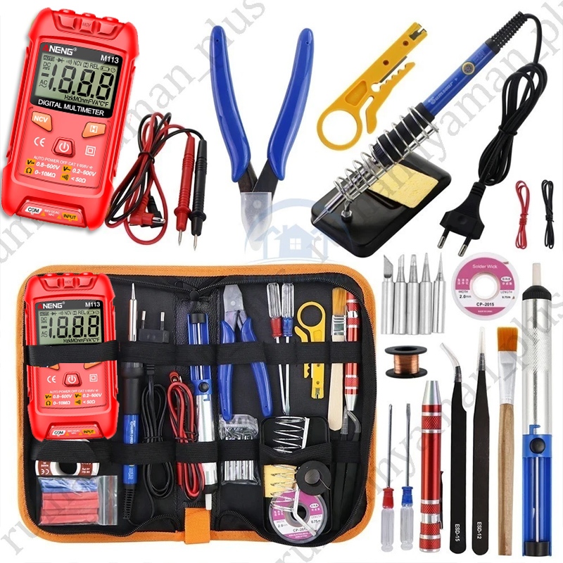 16PC/SET BESI SOLDER PORTABEL 60W 220V SET BESI ELEKTRONIK KIT BESI ELEKTRONIK 200-450 ° C TIPS BESI SOLDER SUHU YANG DAPAT DISESUAIKAN DENGAN TAS