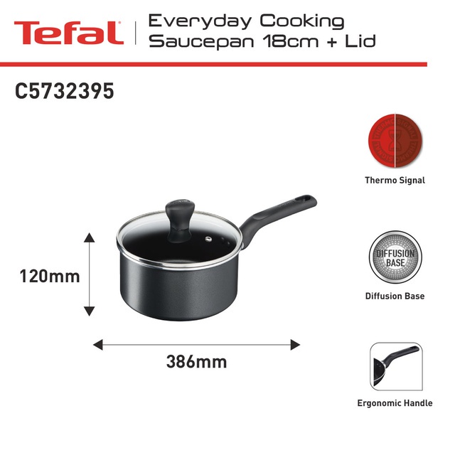 Tefal Everyday Cooking Saucepan / Panci 18 cm + Lid / panci listrik / panci set anti lengket / panci presto