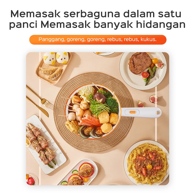 HAN RIVER PANCI LISTRIK HRDHG01 FRY PAN ELECTRIC (2IN1) 2L PANCI LISTRIK MULTIFUNGSI PANCI LISTRIK KECIL-PUTIH
