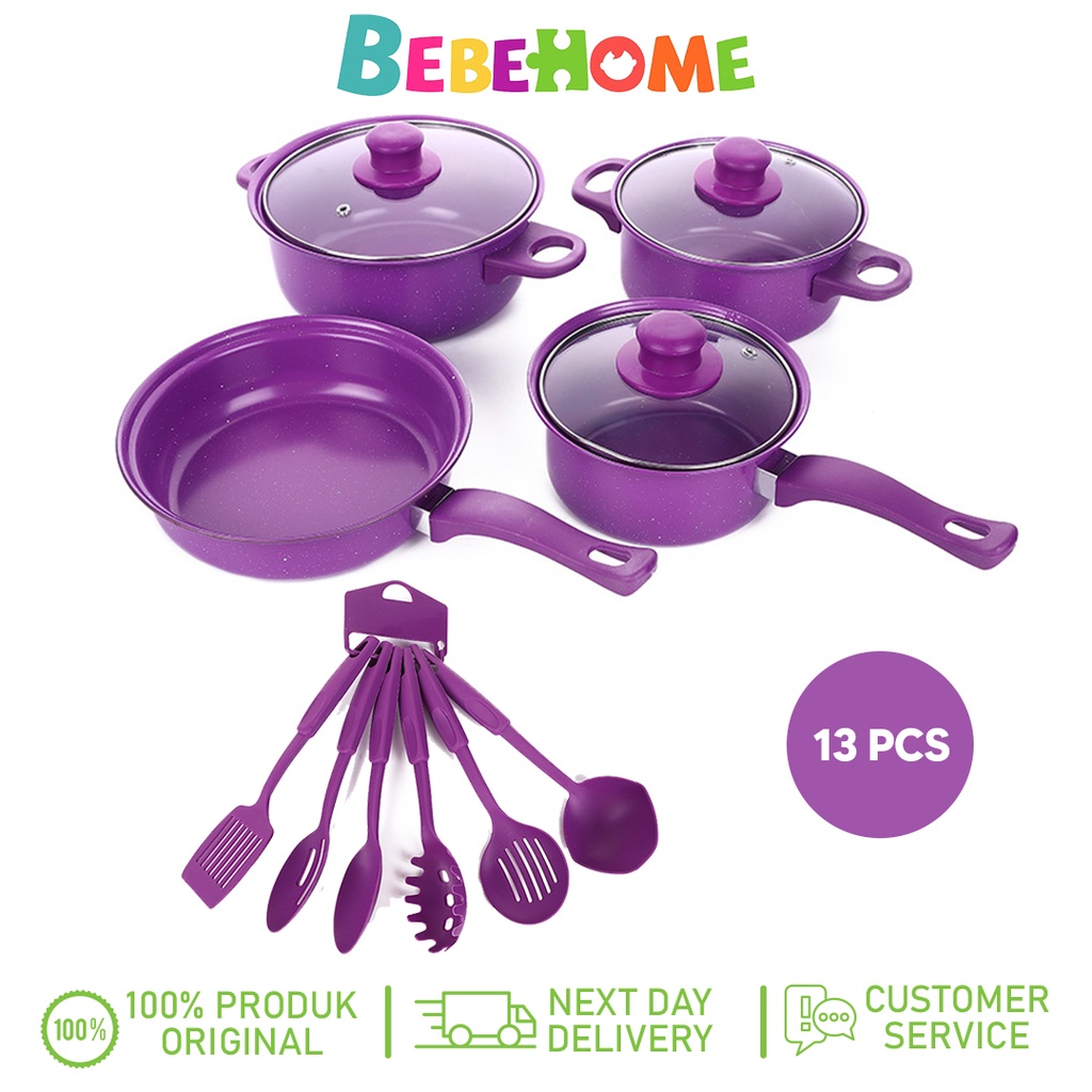 Bebehome Peralatan Masak Lengkap 13 Pcs dalam 1 set / panci listrik / panci set anti lengket / panci presto