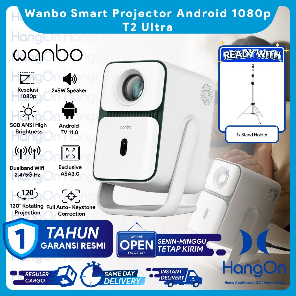 Wanbo T2 Ultra Proyektor Android TV 11 1080P Full HD 500ANSI Lumens 120° Rotating 25W Speakers Auto Focus Projector