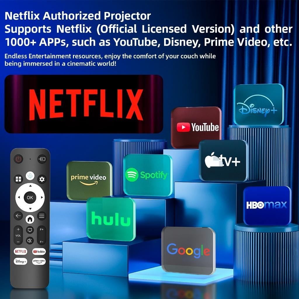 GOOJODOQ 4K Ultra HD 1080P Proyektor Netflix Authorizedf or Phone Speaker Bluetooth Laptop Screen Android Netflix WiFi