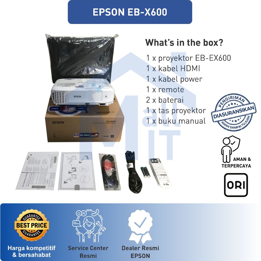 MALLIT EPSON Proyektor EPSON EB-X600 EBX600 EB X600 XGA 3LCD 3600 Lumens TKDN Split Screen VGA HDMI Garansi Resmi Medan